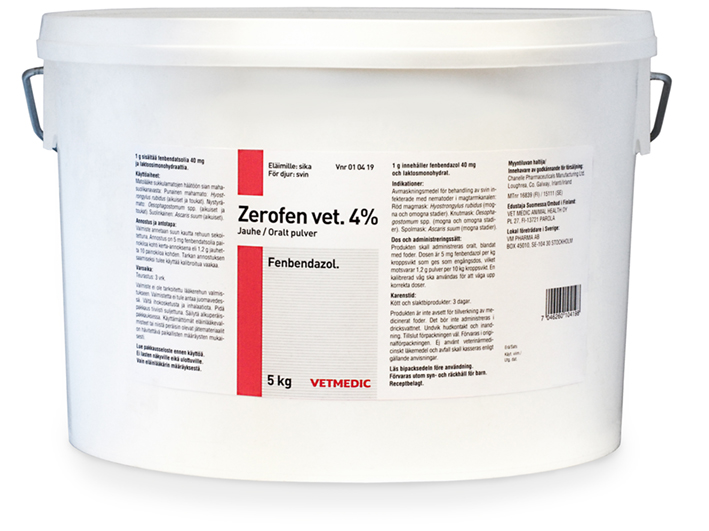 Anthelmintikum mot nematoder hos svin Aktiv substans: fenbendazol Receptbelagt läkemedel Förpackningar: 5 kg ![]() ![]() | ![]() |