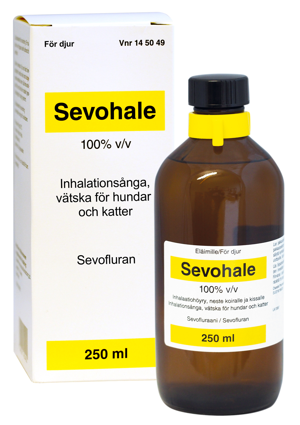 Inhalationsanestetikum för hund och katt Aktiv substans: sevofluran Receptbelagt läkemedel Förpackningar: 250 ml | ![]() |