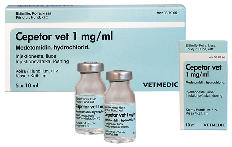 Sedativum med analgetisk effekt till hund och katt Aktiv substans: medetomidinhydroklorid Receptbelagt läkemedel Förpackningar: 10 ml, 5 x 10 ml | ![]() |